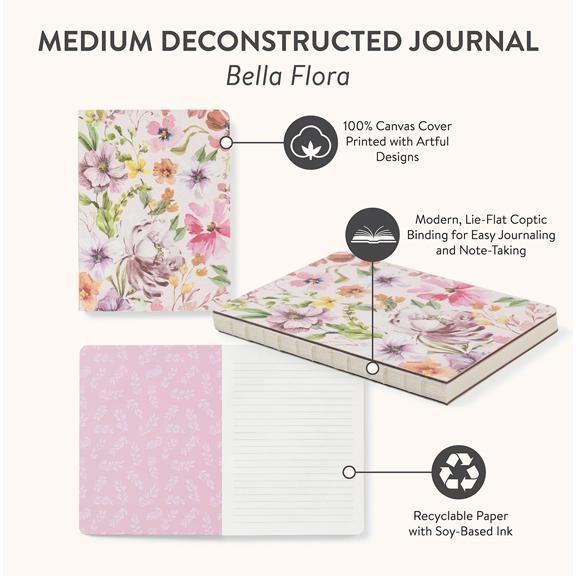 Add a rustic feel to your stationery collection with these charming deconstructed journals. Each journal features 100 gsm paper and a stylish design printed in full color on a 100% canvas cover. The exposed Coptic binding complements the boho look of the journals and allows them to open fully for a flat writing surface that is perfectly supported by the sturdy covers. The medium size gives you plenty of room to write and makes these journals ideal for carrying in a purse, backpack, or book bag.