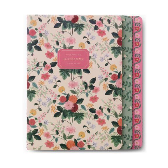 Good things come in threes. This set of three lay-flat notebooks features stitched binding, gold foil accents, and 64 ruled pages each. A delightful trio, the notebooks feature three complementary patterns: Dahlia, Delphine, and Climbing Vines.